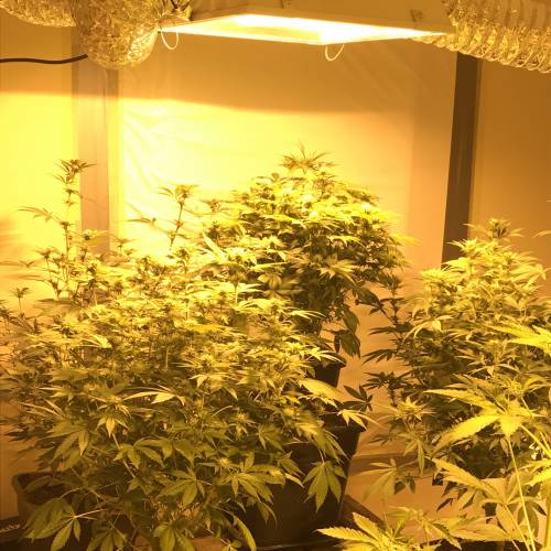 Pouch 23 days into flowering the plants are very healthy, running 7 sour diesel and 1 white k.c