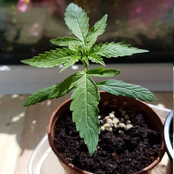 Headwin we was off to a slow start. (building a good root base) but now the growing begins. currently using the God given sun light, turning the pot each day to strengthen the stem. starting with formulaX as feed.
