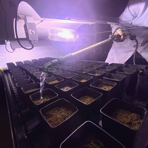 KannaGrowing Estamos en la cuarta semana desde su germinación, y como podéis comprobar sigo regando una vez por semana con 10 litros aprox para todo el cultivo, 20 Unidades x 4 Variedades = 80 plantas en macetas de 1,4L aunque yo solo he rellenado con 1L de sustrato cada una de ellas.