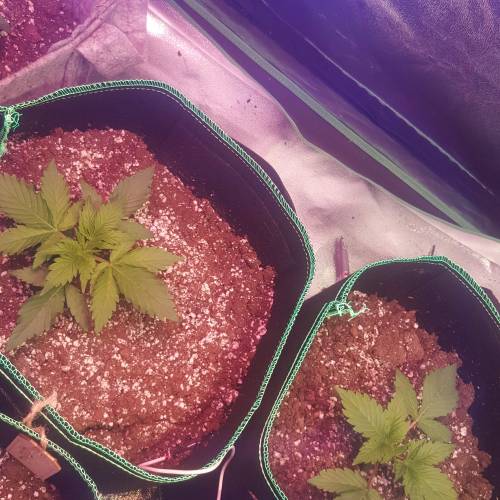 Buckets420 week 2 is here and all are looking healthy, transplanted them into their smart pots yesterday and they are looking happy, i lowered the ph on the winegums to 5.7 ish and growth sped up immediatly im very happy with how things are going, in about a week or so ill be adding a electric sky 180 led to my tent any advice or tips is greatly appreciated ! have a great week!