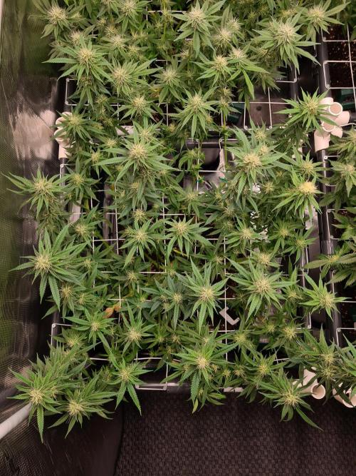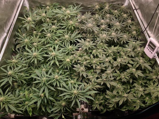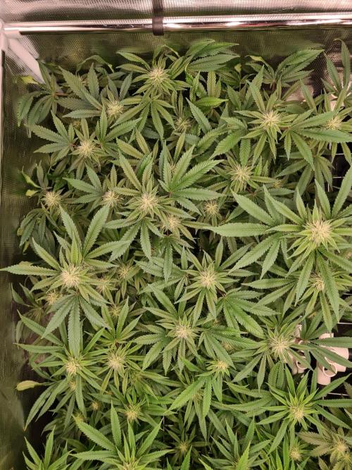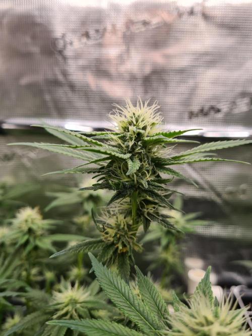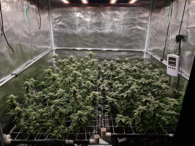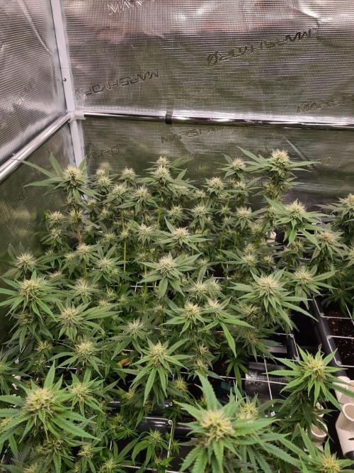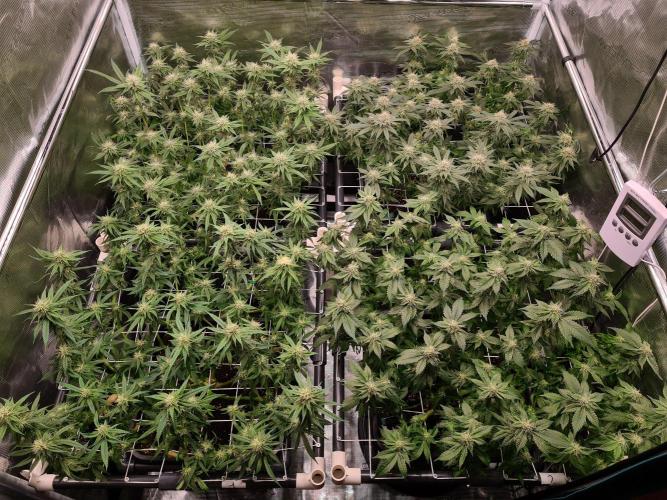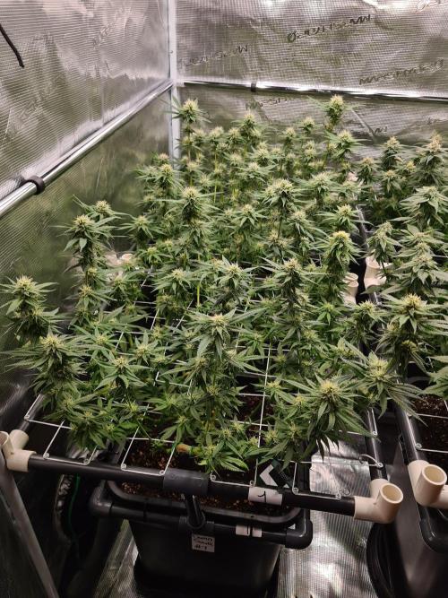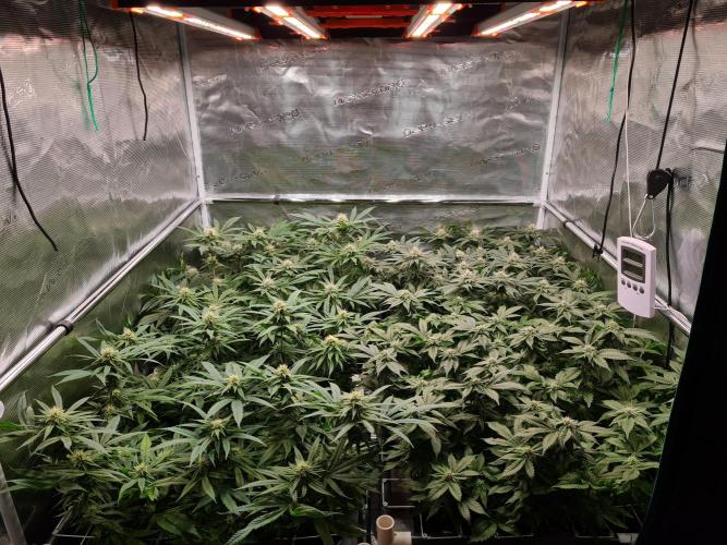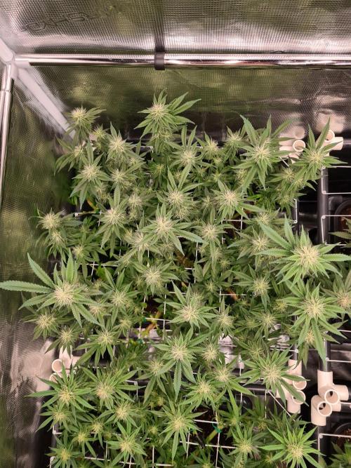 BLAZED Week 7 (10-3 to 16-3) 10-3 Temps: 17.5 to 21.8 degrees Humidity: 57% to 70% 11-3 Temps: 18 to 21.8 degrees Humidity: 61% to 65% Watering #2: 500 ml. 12-3 Temps: 17.5 to 21.7 degrees Humidity: 57% to 66% The individual ScrOG project is done! I attached the screen to the #1, the #2 will be done tomorrow! I had to do some Supercropping (HST) to the plant to make everything fit. Set the light to 40% strength with a distance of 60 cm. I didnt think about the poles of the tent, so its not fitting perfectly, but i will fix that tomorrow! 13-3 Temps: 17.6 to 21.2 degrees Humidity: 56% to 64% Watering: Both 1000 ml. Attached the screen to the #2 and did some supercropping aswell. The screens fit perfectly now, i am very happy with the end result!! 14-3 Temps: 17.2 to 21.1 degrees Humidity: 58% to 69% Watering: Both 330 ml. (Only Calcium added) 15-3 Temps: 17.2 to 21.5 degrees Humidity: 60% to 71% Watering: Both 1000 ml. Set the light from 40% to 45% strength. 16-3 Temps: 17.5 to 21.6 degrees Humidity: 64% to 70% Progress of 2 White Widow's in the same tent: https://growdiaries.com/diaries/254339-green-house-seed-co-white-widow-grow-journal-by-blazed