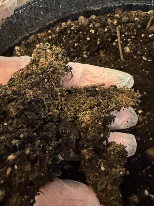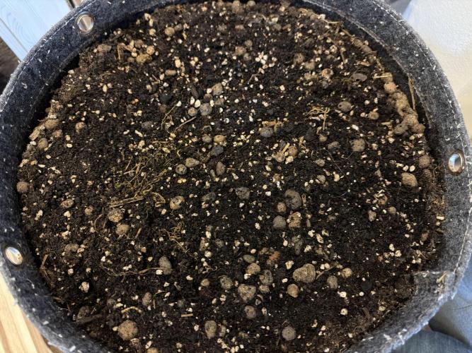 It’s a 40l pot. Bottom 30% was BioBizz AllMix. Top 70% was BioBizz LightMix. There are remnants of the following products in the soil: