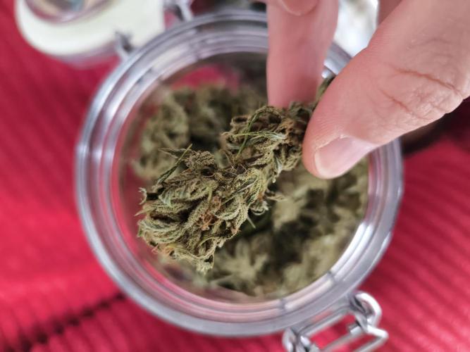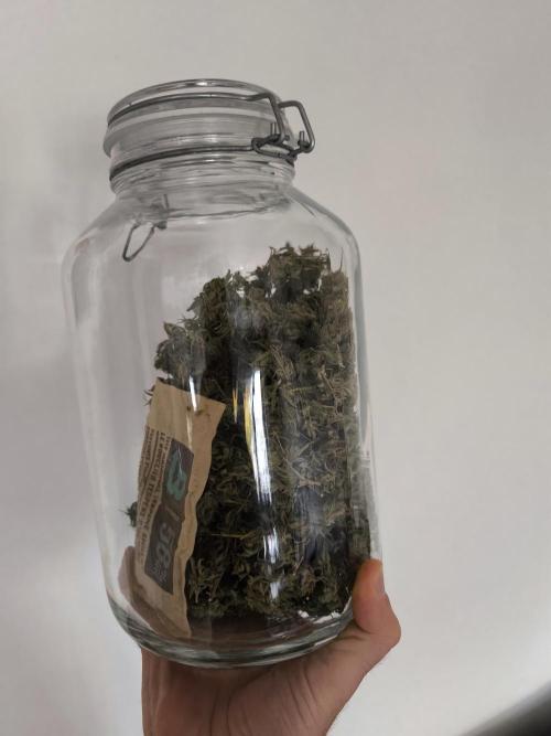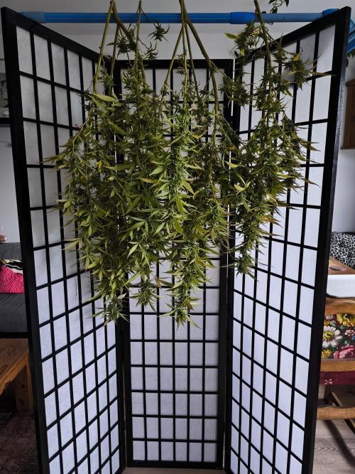 BalconyBoy 24.09.25 due to the weather outlook and fear of a powdery mildew revival it was time to harvest. I wet trimmed everything down to the buds and discarted all stems right away. The reason being that I want to accelerated drying and see each nug closely before putting it into the multi tier drying screen im using. In this process some smalls with mildew were identified and sent to compost. After a week flowers were placed in closed plastic buckets to get even moisture content. Further processing awaits.