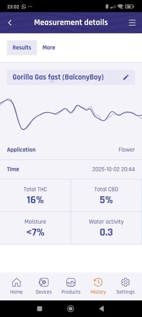 BalconyBoy The last week was about deciding to harvest or not to harvest. Trichomes looked ok but not yet textbook ripe. Due to first spots of mold identified and cut away there was fresh material to put in the venty for testing (not the mold buds). Testing showed tremendous flavor and solid potency already.