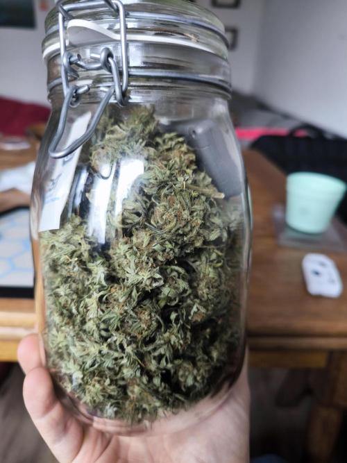 BalconyBoy 24.09.25 due to the weather outlook and fear of a powdery mildew revival it was time to harvest. I wet trimmed everything down to the buds and discarted all stems right away. The reason being that I want to accelerated drying and see each nug closely before putting it into the multi tier drying screen im using. In this process some smalls with mildew were identified and sent to compost. After a week flowers were placed in closed plastic buckets to get even moisture content. Further processing awaits.