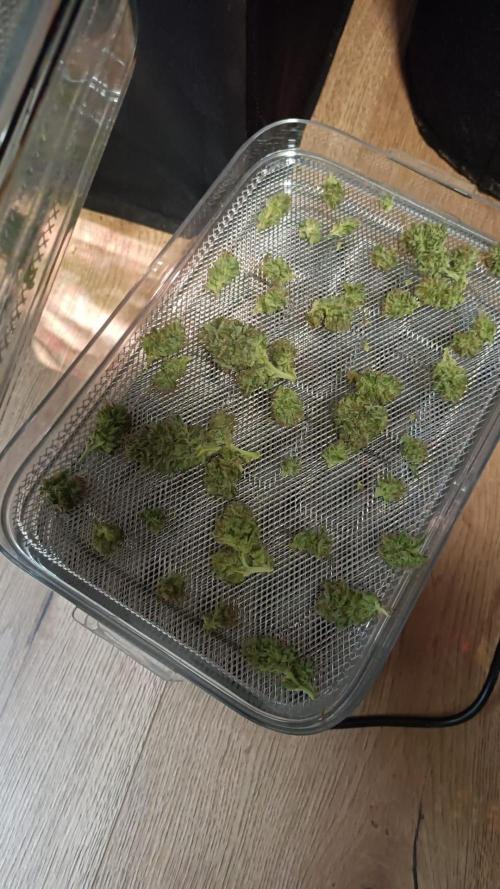 Most of the plant had bud rot and mildew, so i am drying the ok looking buds in a dehydrator.