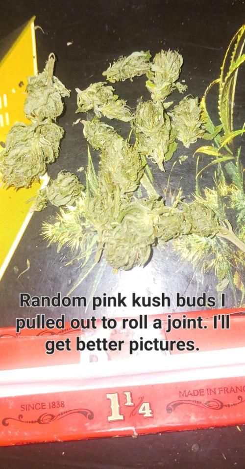 masterofsmeagol 9/27 She made it through the rain! Looking great in the sunshine. I gotta bring the loupe over again. It's smelling really strong and it looks like most of the pistols have changed color. If I wasn't losing more to damage I'd leave it out longer. It will still be a couole days probably because I need to put away what's hanging and make room. This has been one crazy year. Forty degree temp swings. Crazy year and even crazier pot. Can't wait to try them all! EDIT: I've been trying like hell to update this thing. I've been working my balls off. I ALMOST took the last pink kush. I have a video i'm trying to upload on my computer because I can't even update ANYTHING on my phone. Boy this years weed came out incredible! I've been working hard but as soon as I have a second to myself and get everything at least inside i'll finish the harvest and smoke reports and give some good pics/videos. 9/28 Finally got a video uploaded. It was yesterday. The Lome pink kush is looking real good. I'm losing more and more to these insects. I want to leave this plant a little longer and have the buds come together but the trichs are cloudy now. Almost every pistol has turned a red color. I'm going to bring my loupe and check it out today. Everything has turned out fantastic. I'm looking forward to taking pictures.