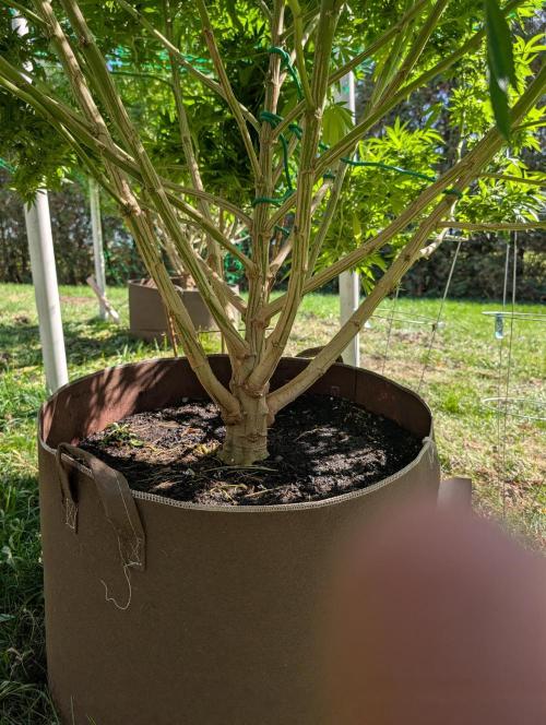 Otherwise girls are quite healthy. Great looking trunks and surface roots, getting quite thick from all the winds! Which is great, means they should be able to support a good bud load without having to trellis (hopefully...) but have to wait and see what happens!