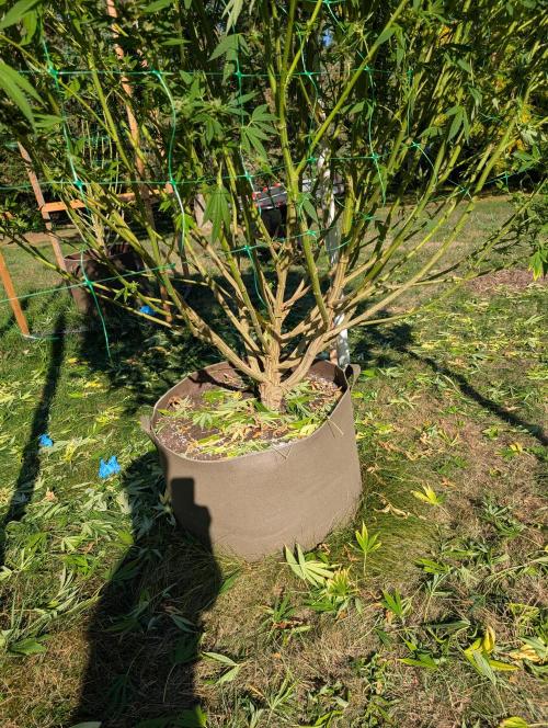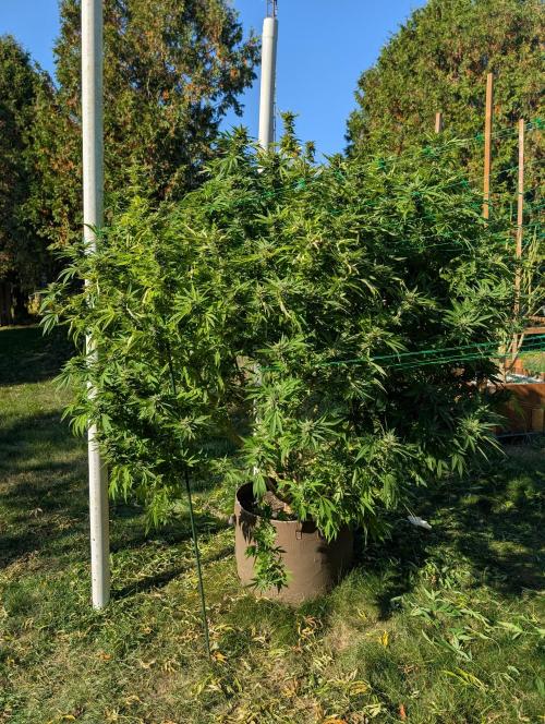Grow_for_Happiness Was a great week for the girls, lots of fattening up as we get closer to the finish line. Gave them both a good defoliation, the smaller one at beginning of week and the larger one at the end of the week (today). Lota of light penetration and airflow now to help the lower buds finish and hopefully keep the bud rot at bay. Sayw one little patch between both plants, just snipped it out and cleared anything touching it and kept on my way. I always give it a good 6" clearing around where I find any rot, better safe than sorry with that stuff! Weather been beautiful, sunny and warm (20°C) every day aside from two days where highs were only 12°C and lows were -2°C. Two weeks out of three now that we've had multiple nights below zero, uncommon for this early in fall. No reds yet when looking up close, but a lot of cloudy trichomes and not much clear so wouldn't be surprised if these are only another 7-10 days. Not long to grow now!