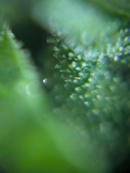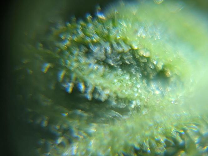 Grow_for_Happiness As we round the corner on week 7 of flower these girls are starting to pick up weight and starting to see some decent trichome production. Still a good ways to go though, unless they pick up steam fast it's looking like a mid to late October finish. Seeing some lightening of the leaf edges and a bit of yellowing, guessing it's because of the 45 gallon pot, just stressing the roots a bit too much. Hopefully doesn't effect the yeild too much, just making sure to keep em fed and watered to make sure they're happy. Have been making sure PH is 6.5-7 and nutrient strength is correct, so root stress is most likely the issue. Otherwise everything is looking great, did a good plant inspection today and no issues that I noticed as far as WPM or bud rot, which can sometimes be a concern this time of year.