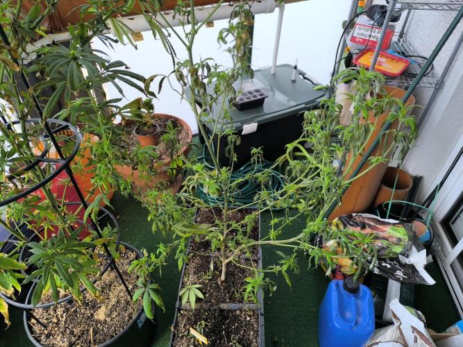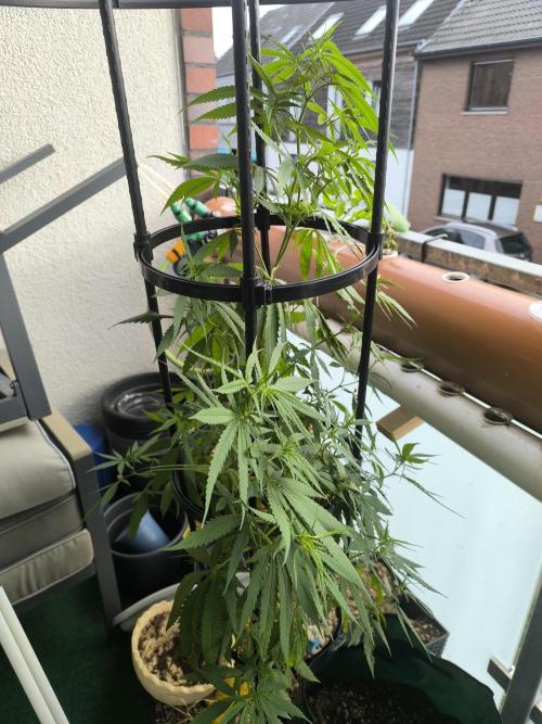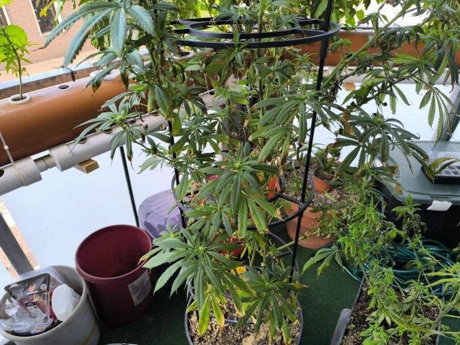 Amazone27 so mitten der neue Woche -- die Viper hat das Topping gut überstanden und ist weiter am austreiben,hat jetzt einen weiteren Ring aufgelegt. Red macht sich jetzt auch gut und ich musste die Begleitpflanzen ein wenig kappen ,weil die schon alle überwuchert hat. Die Thai hat mir ein schrecken eingejagt da sie umgefallen ist, musste sie Stützen . Habe dann gemerkt das das Bewässerungssystem ein Riss im Schlau hatte und die Pflanze ertränkt hat ,alles geflieckt und erstmal trocknen lassen,
