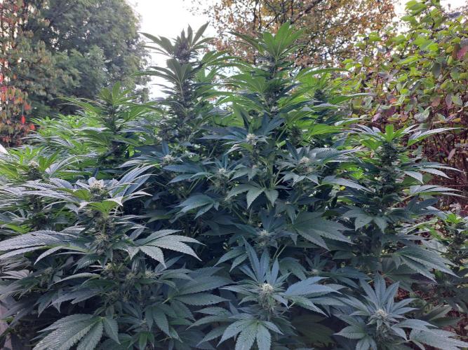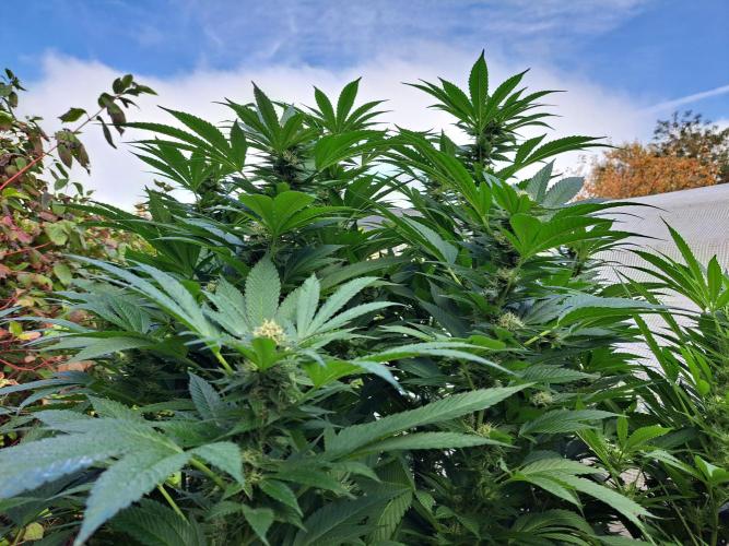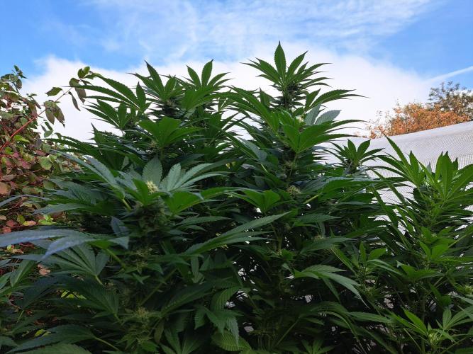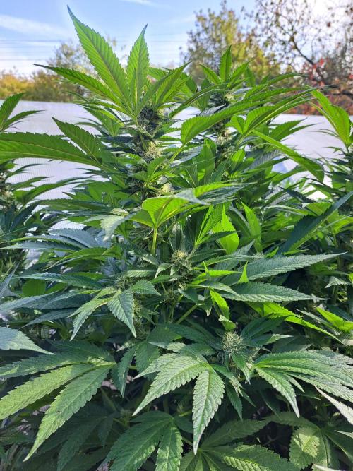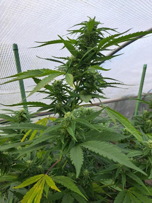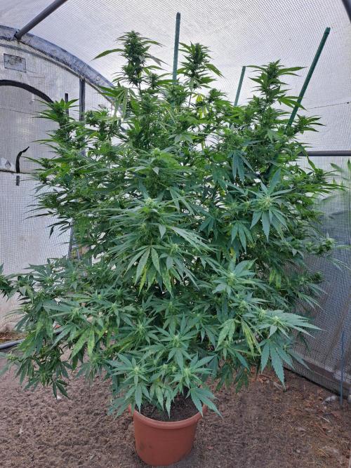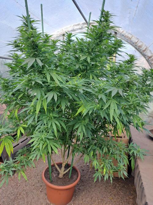 Oyziphar The day length has dropped under 14 hours ⏰⏰⏰ and this will considerably accelerate the flowering of the plants 🌻🌻🌻 🎯 One Cookies Gelato outdoor in full ground 205 cm 🎯 Two Liberty Hazes in pot (most of the time outdoor; sometimes in the greenhouse) Plant n°1 = 170 cm ; Plant n°2 = 160 cm I removed some yellow leaves (in the middle of the plant) and the low branches that hit the ground