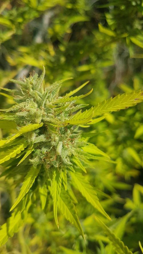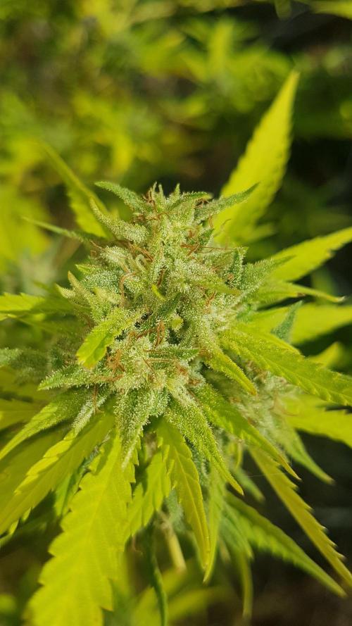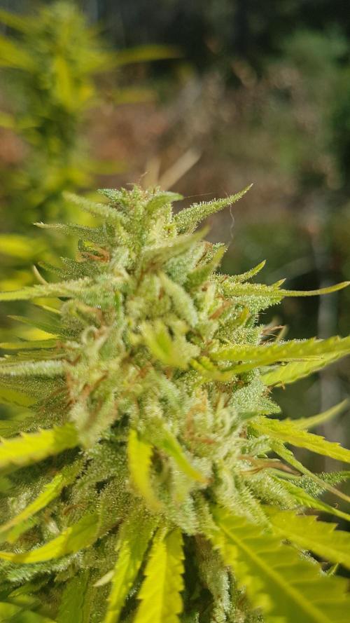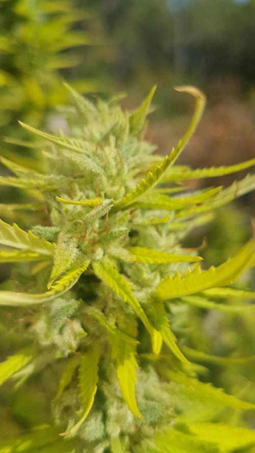 Flowering is quite early; this could be one of Kannabia's two fast strains, Candy Cream or Pure Skunk, or perhaps a mutant Ginger Punch.