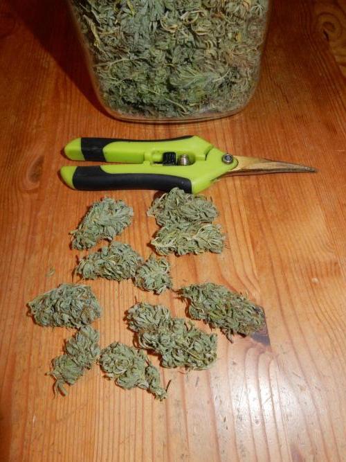 Sie war eine sehr gut, fast zu viel wachsende Pflanze für den 26 l. Topf. Gegen Ende mussten doch ein paar Triebe angebunden werden, weil sie zu schwer wurden. Ein paar Triebe mussten im Sommer brutal geknickt werden um zu verhindern, dass sie das Zeltdach berühren. Sie hat die Herausforderung jedoch bestanden und gezeigt, dass sie in meinem Klima eine Ernte im Freien bringen kann, wenn sie geschützt steht. Sie fängt leider spät zu blühen an, zwei Wochen früher und sie wäre voll ausgereift. Vielleicht kann hier Far Red Light Abhilfe schaffen. Wenn ich sie noch einmal anbauen würde, würde ich sie in der Vegetationsphase um 70% entlauben, damit sie einen kürzeren kräftigen Stamm entwickelt und nicht so spargelig in die Höhe wächst. Mehrfaches Entlauben über den Sommer hinweg ist auch sinnvoll. Ihr Duft bei der Ernte war sehr fruchtig, etwa so wie früher Altbierbowle gerochen hat, in das Dosenerdbeeren und der Saft gekippt wurde. Bei der Trocknung kommt noch etwas harziges, balsamisches zum Vorschein, sehr angenehm in Kombination mit dem fruchtigen Duft. Ich empfinde sie als ziemlich starken Sativa Rauch, der mehrere Stunden spürbar ist und nur langsam abklingt. Trotz aller Widerstände habe ich es geschafft sie einigermaßen gut über die Runden zu bringen, der Steckling von ihr wächst und gedeiht und freut sich auf nächstes Jahr. Tip: besser früher als später entlauben und toppen um eine kräftige Statur zu bekommen, überhaupt kommt bei ihr ein wenig Stress den Aroma zu Gute. Sie kann bis zur Blüte im Freien stehen, sollte ab der 3-4 Woche der Blütezeit jedoch einen Regenschutz bekommen und ihre Statur offen und luftig sein. Sie liebt die Sonne aber ist kein Wasserschlürfer. Im Folienzelt ist Luftbewegung zwingend erforderlich.--- It was a very good plant, growing almost too much for the 26 litre pot. pot. Towards the end, a few shoots had to be tied up because they became too heavy. A few shoots had to be brutally pinched in summer to prevent them from touching the tent roof. However, it passed the challenge and showed that it can produce a harvest outdoors in my climate if it is protected. Unfortunately it starts flowering late, two weeks earlier and it would be fully ripe. Perhaps Far Red Light can help here. If I were to grow it again, I would defoliate it by 70% during the vegetation phase so that it develops a shorter, stronger stem and doesn't grow so spindly. Repeated defoliation over the summer also makes sense. The scent of the duck was very fruity, a bit like how old beer punch used to smell when tinned strawberries and juice were poured into it. During drying, a slightly resinous, balsamic aroma emerges, which is very pleasant in combination with the fruity scent. I find it to be a fairly strong sativa smoke that lasts for several hours and only slowly wears off. Despite all the obstacles, I managed to get her through reasonably well; her cutting is growing and thriving and looking forward to next year. Tip: it's better to defoliate and top her sooner rather than later to get a strong stature; in fact, a little stress is good for her aroma. It can be kept outdoors until flowering, but should be protected from rain from the third to fourth week of flowering and kept in an open, airy location. It loves the sun but does not need a lot of water. Air circulation is essential in a plastic tent.