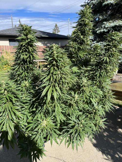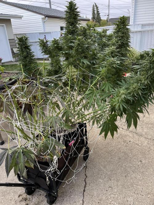 Got UV led lights from AC Infinity going today. These are designed for indoor so I can only put them out on nice weather days. Did this last year and seems to work. The UV lights make Edmonton in the fall feel more like California in the summer, or at least that’s the idea. UV is critical for trichome production so it’s a good way to boost THC percentage.