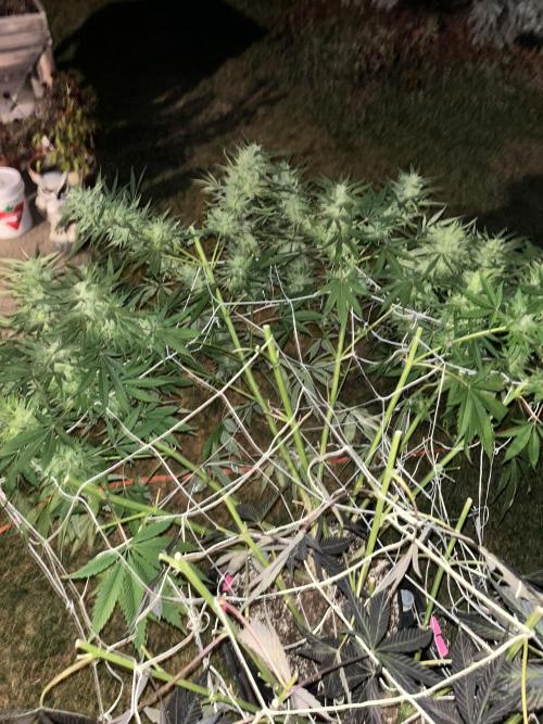 Oct 2: colas are getting heavy and one stem actually split leaving one side hanging down. The scrog nets were still holding it together. Decide to start harvest with colder weather forecast for this weekend.