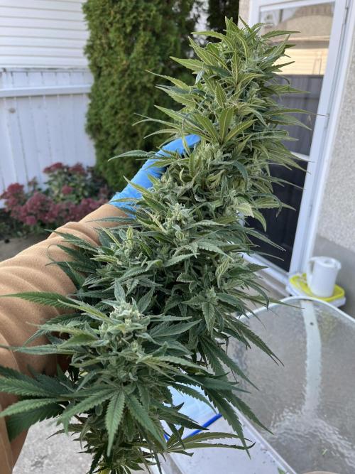 Holy crap. The buds on this phenotype are not good, but it is producing way more resin than my other three plants during hash washing. Harvested 2171 g of wet buds and sugar leaves. When dried, this would be about 435 g and there is another chunk of about 600 g wet still to go.