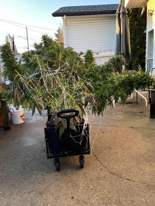 Oct 4: harvested final of three chops. Was 880 g wet today which went for ice water hash. Total wet is 3051 g which would be equivalent to about 640 g of dried buds. Got better recovery this round using more ice to make it all colder before starting the wash. oh well, didn't maximize hash recovery off another huge plant. Live and learn.