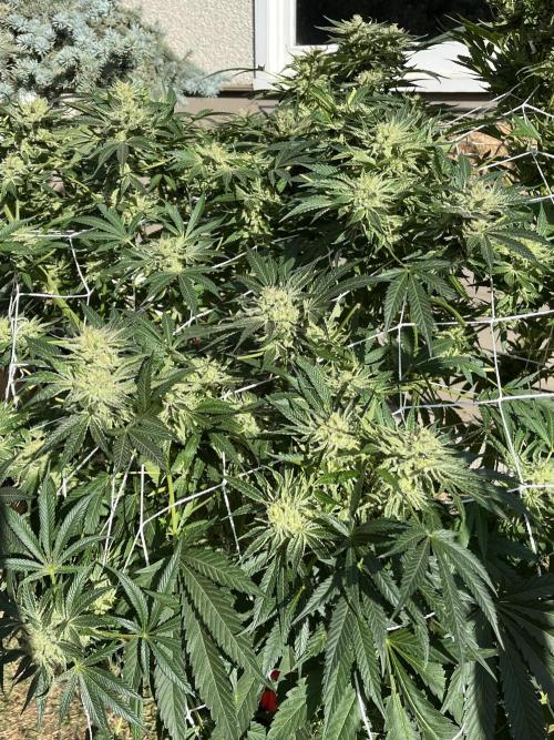 Got the UV led lights from AC Infinity going. The sunlight gets weak here quickly starting in mid-August and the UV helps form trichomes. Used it last year and it seems to help. Nice weather days only as these lights are not intended for outdoor use.