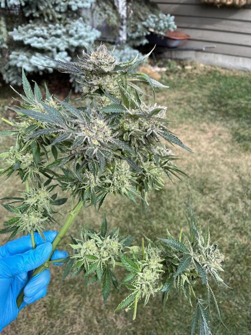 Northern_Ent Sep 27: still lots of buds remaining and did a big defoliation to expose them to sunlight. Very nice and the hash resin looks terrific. Awesome.