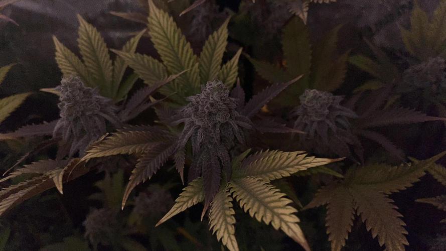 TerpTurtle Plants have stopped stretching and started to focus on flower development with pistils reaching Decent resin production so far in this tent, getting loud with the gassy fruity in your face cat piss smoothie