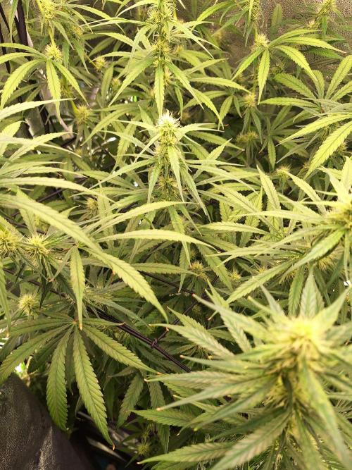 Wenz004 Jetzt ist mir klar warum Sativa so lange brauchen - nach 2 Wochen und 2 Tagen Stretch kaum noch richtige Blüten sichtbar - heute 4.1 Liter Getränk eher inhaliert als getrunken. Weiter gehts.