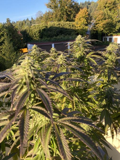 Aussehen: Macht durch ihre Haze-Genetik den wildesten Eindruck (säulenförmige Blüten mit fein-fingrigen Blättern, welche sich im Herbst in ein dunkles Lila verwandeln). Dicke Harzköpfe, welche mich von Hash träumen lassen.