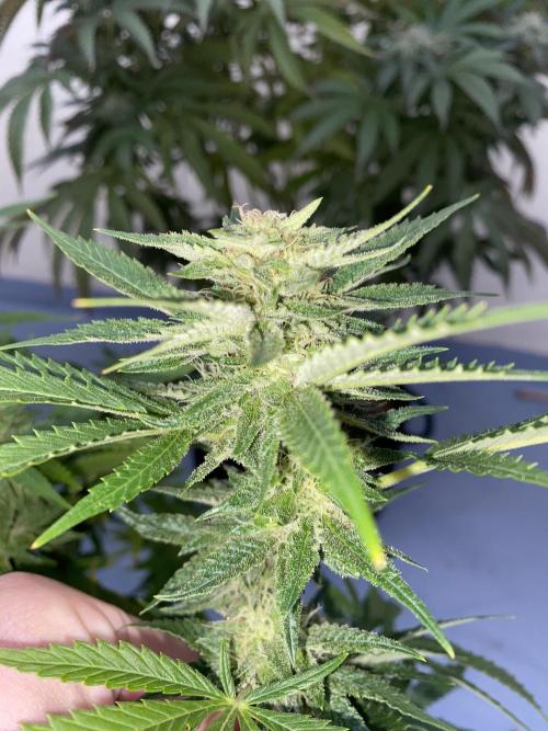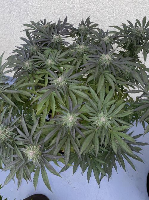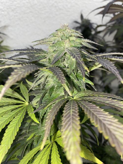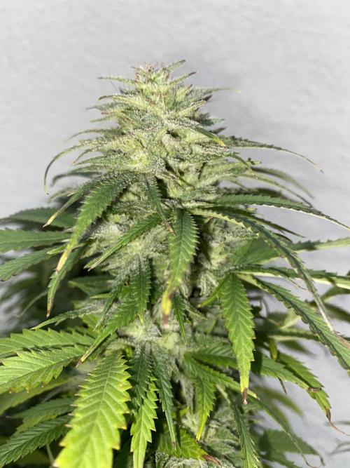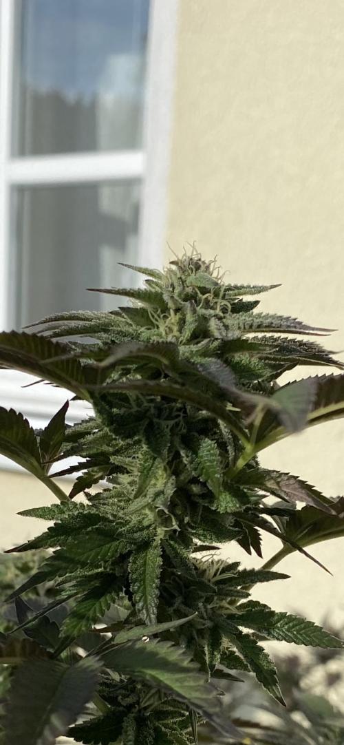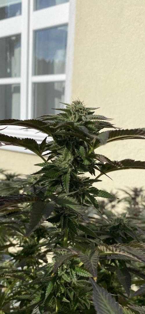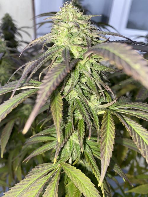 Aussehen: Sie zeigt eindeutig ihre Mac-Genetik. Golfballgroße und steinharte Blüten, welche durch ihren dichten Harzbesatz doch sehr an ihre Elterngenetik erinnern. Dies in Kombination mit dem schönen stacking sowie den nun immer mehr purzelnden Blättern lässt einem wirklich das Wasser im Mund zusammenlaufen.