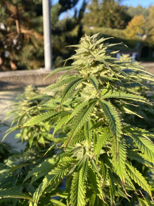 Diese Woche gibt es nicht viel zu berichten, einerseits, da die Pflanzen ohne großes Murren ihr Ding machen und trotz der bescheidenen Wetterlage doch etwas an Masse aufgebaut haben, und andererseits, da ich mich bei diesem „Britischen Hochsommer“ für ein paar Tage in die Wärme geflüchtet habe, also nicht viel bei den Pflanzen war. Trotz alledem stehen sie wirklich sehr solide da und haben angefangen, ihr Herbstkleid anzulegen. Meiner Meinung nach beginnt nun die schönste Zeit des Outdoorgrowings. Ich kann es kaum erwarten, mir die kleinen wieder persönlich anzuschauen und ihre volle Herbsttracht zu bestaunen. Die Fotos hat dieses Mal mein Vater gemacht (ja, bei uns muss die ganze Familie ran)😁. So wie die Damen jetzt aussehen und angesichts dessen, dass die nächsten Tage nochmal richtig schön werden sollen, bin ich doch recht zuversichtlich, dass wir hier noch einen richtig schönen Abschluss hinbekommen.😊
