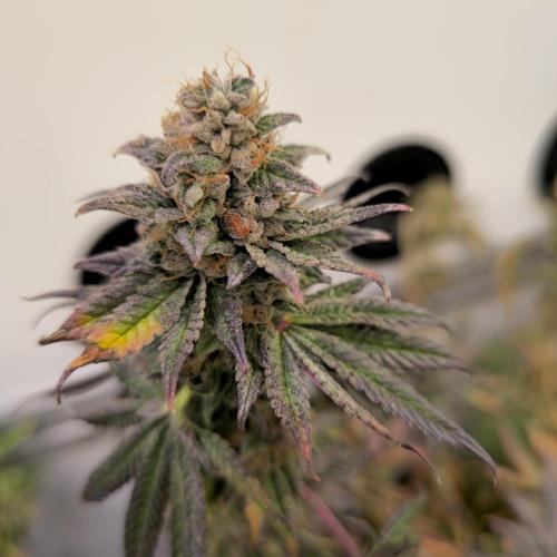 Langsam treten auch erste Farbverläufe zutage – zarte Violett- und Orangetöne mischen sich in das satte Grün und deuten an, wohin die Reise geht. Die Pflanzen setzen nun alles daran, ihre Energie in die Blütenproduktion zu stecken. Trichome schimmern im Licht, Harzbildung nimmt spürbar zu, und ein intensiver, vielversprechender Duft liegt in der Luft.