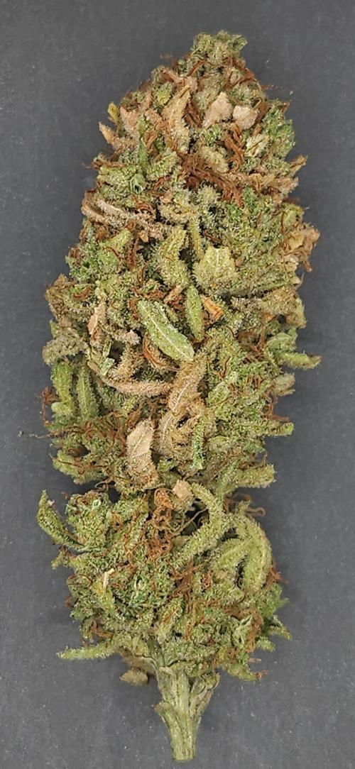 Die Knolle zeigt sich kompakt und länglich aufgebaut, mit einer schönen Mischung aus hellgrünen bis olivfarbenen Blütenblättern. Die Struktur ist dicht, aber nicht zu hart, was auf eine gute Trocknung und Curing-Prozess hinweist. Zahlreiche orange-braune Härchen (Fäden) durchziehen die Oberfläche und verleihen der Blüte ein lebendiges Erscheinungsbild. Eine feine Schicht aus glitzernden Trichomen überzieht die Knolle gleichmäßig und deutet auf einen hohen Harzgehalt hin – ein Zeichen für Potenz und Qualität. Beim Aufbrechen verströmt sie ein intensives, süßlich-erdiges Aroma mit einer deutlichen fruchtigen Note, das an frische Cookies erinnert. Beim Rauchen entfaltet sich das Aroma vollmundig: der Geschmack ist zunächst süßlich und erinnert an Gebäck, gefolgt von erdigen Untertönen und einem fruchtigen Abgang. Der Rauch ist angenehm weich und hinterlässt ein cremiges Mundgefühl. Die Wirkung setzt recht zügig ein – zunächst spürbar aufmunternd und stimmungshebend, mit einer leichten geistigen Klarheit und positiver Energie. Schon nach kurzer Zeit stellt sich eine angenehme körperliche Entspannung ein, ohne schwere Müdigkeit zu verursachen. Die Kombination sorgt für gute Laune, Gelassenheit und häufige Lachanfälle – ideal für gesellige Momente oder kreative Phasen. Fazit: Eine rundum ausgewogene Sorte mit köstlichem Cookie-Geschmack, erdig-fruchtigen Nuancen und einer Wirkung, die sowohl Körper als auch Geist verwöhnt – belebend, entspannend und einfach zum Lächeln.