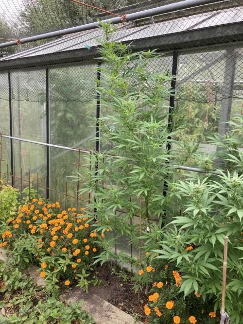 It’s the longest day of the year! From now on the days will get shorter. My plants are growing fine. I planted Tagetes and basil next to my cannabis plant and the slugs and snails are eating those. They are leaving my cannabis alone, yay! 🙌