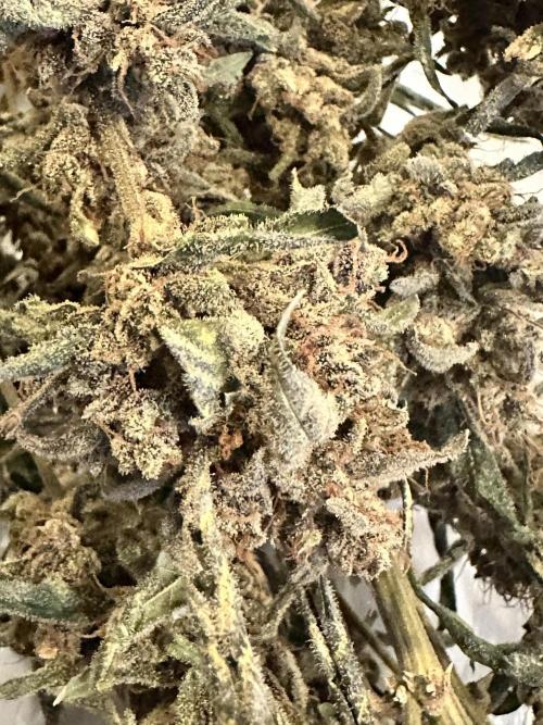 Trim went smooth ✂️👌 and buds are hanging to dry in perfect conditions 🌡️💨 (around 60°F / 60% RH). Trichomes are glistening ✨ and colors are rich — a perfect finish to the run 🌈🌿.