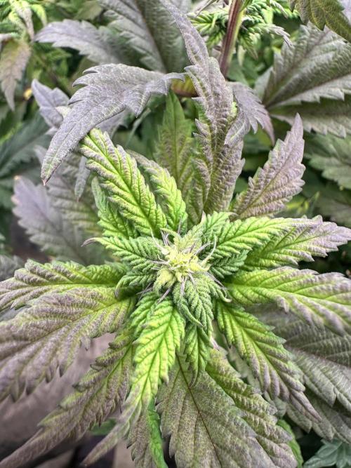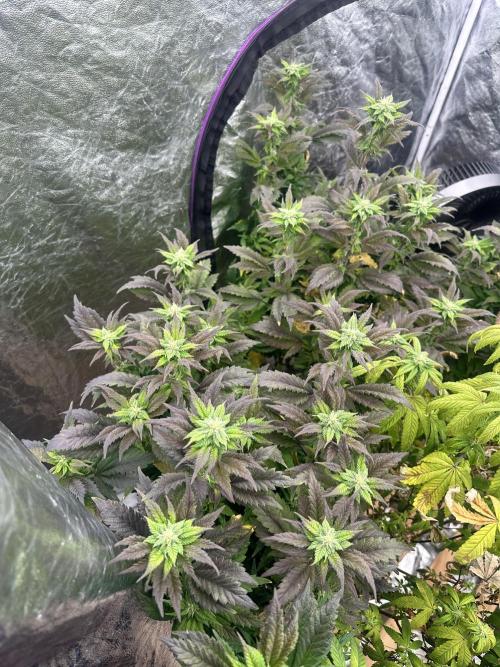 The tent’s alive with energy this week 🌞🌿! Red Hot Violet is absolutely thriving 🔥💜 — strong structure, healthy stretch, and bud sites forming beautifully 🌸💎.On the flip side, Amaretto Sour 🍋 seems to be getting a bit choked out 😕🌱 — growth has slowed and she’s fighting for space and light 🌤️. Planning a careful separation this week 🧤💧 by filling a tote with water and gently working the soil apart