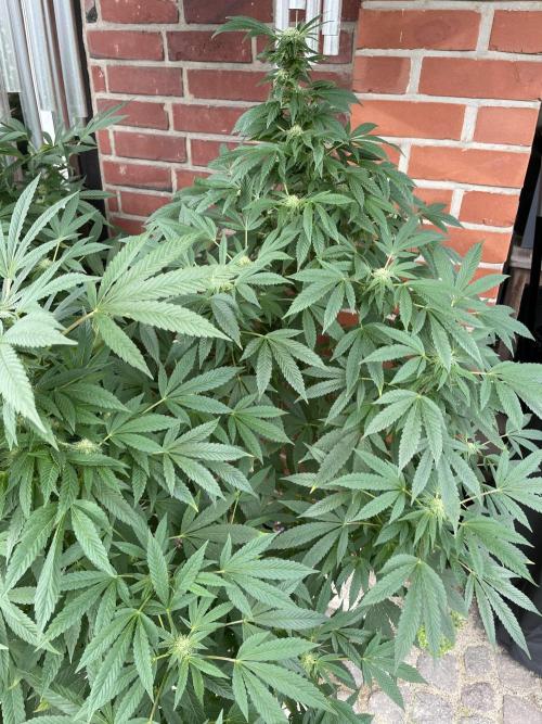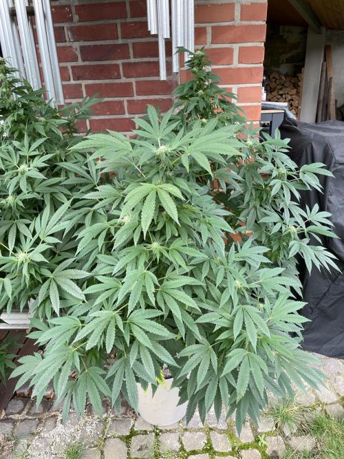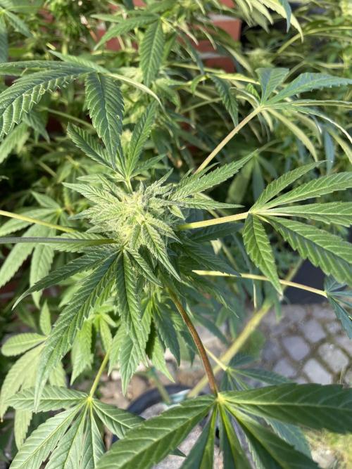 Sejanus21 The buds already glitter like powder sugar. This strain is a producer. Due to heavy winds, the pot fell down once, but there was no severe damage. I cut a lot of leaves to increase airflow and light exposure for the lower buds. My guess is that I can harvest in three weeks (mid October).