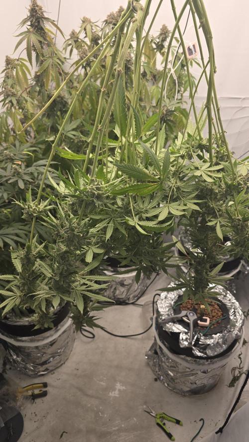 Hey, do you run a water chiller? The flowers look amazing, but the roots pic looked a little rough and like they could use some love. I use to use 5 gallon buckets (diy bubble buckets) and I always had issues with the roots/water getting too warm. I switched to a PA Hydroponics Fallphonic system and added a water chiller....now, my only problem is the roots getting massive, which is a good problem! Lol, Grow on...grow on.
