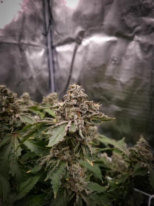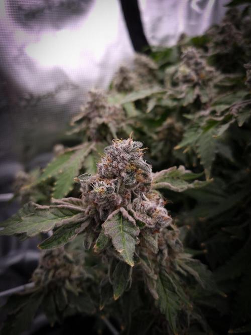 HippyHemulen She looks so yummy and beauty with little bit purple hues, frosty as hell. Smell is sweet and fruity, cant wait to smoke this. Going to chop in few weeks.