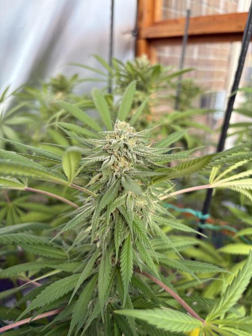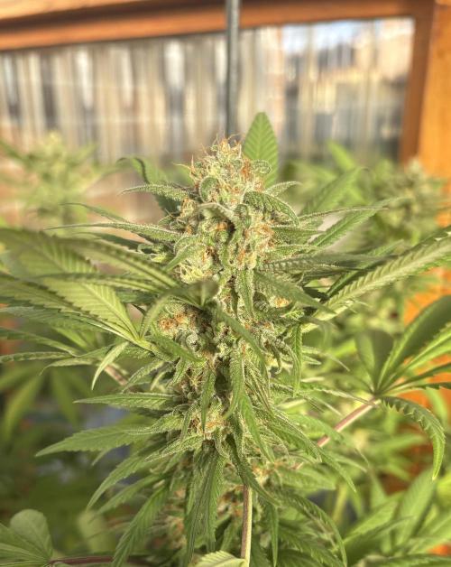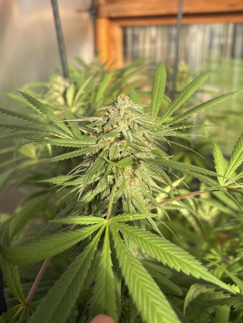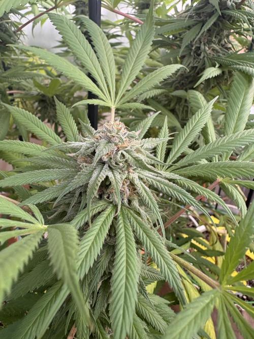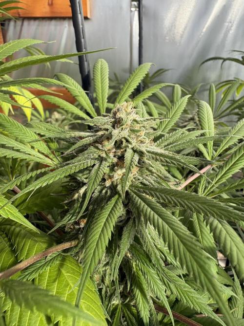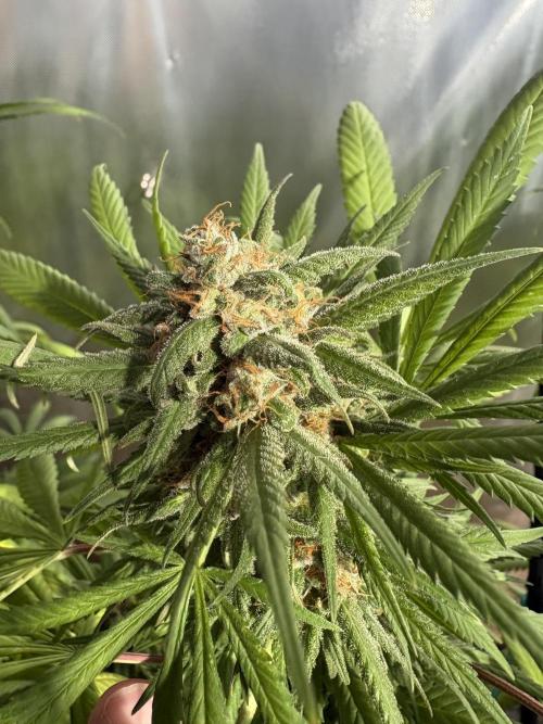 Blue Dynamite #2 is doing very well and has the larger flowers of the two specimens of this strain. Trichome production is good, and I estimate it has potential to achieve around 20% THC. Plant and flower structure are quite nice and uniform (across both specimens) however flowers aren’t overly dense with plump calyxes and are more “hairy”. Some nice bright orange colouration of wilted pistils. Plant smells of citrus and sweet berries, which is quite appealing.