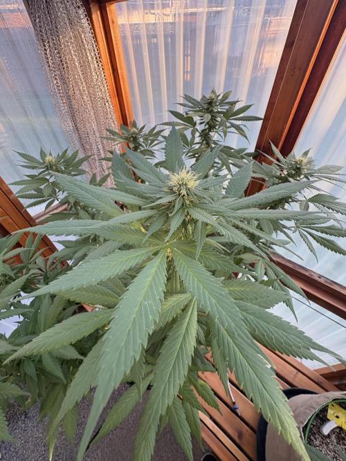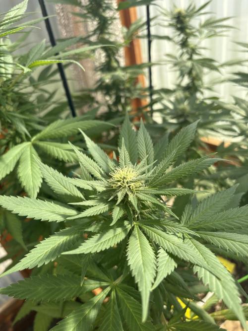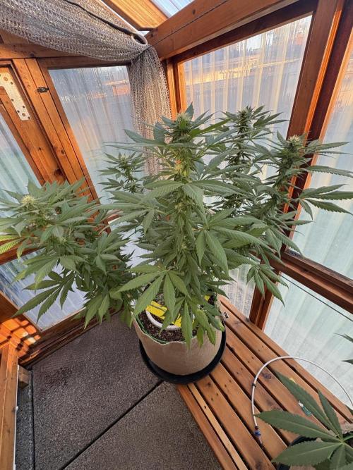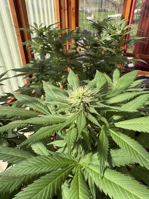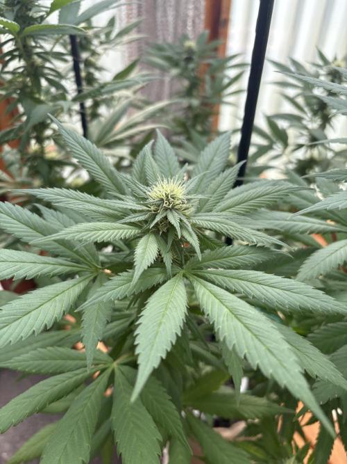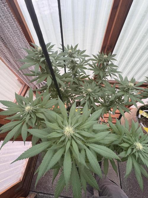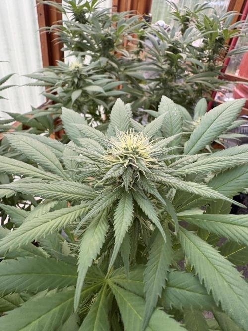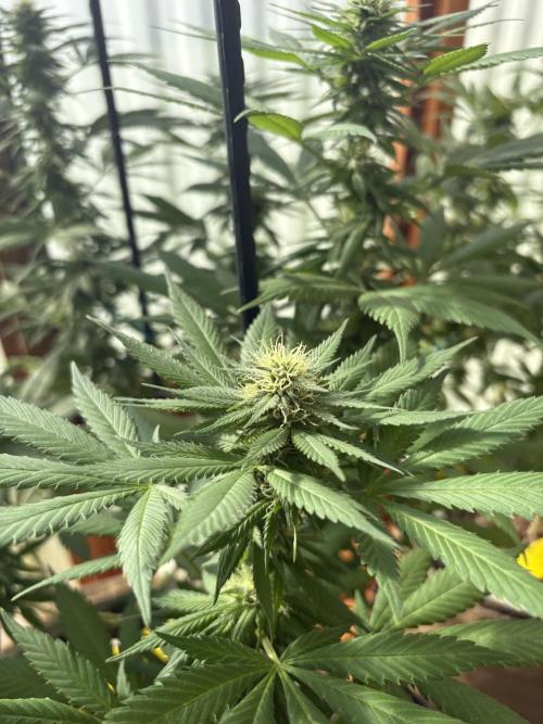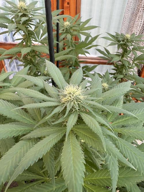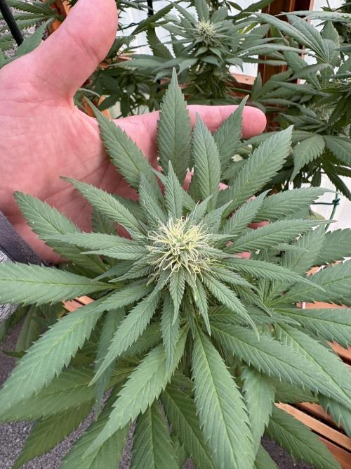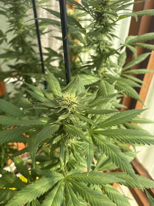 The plant isn’t particularly smelly, but when handled or rubbed up against, it does smell strongly of pine. Flowers are developing as expected, but I’m not seeing the trichome production I’d like.
