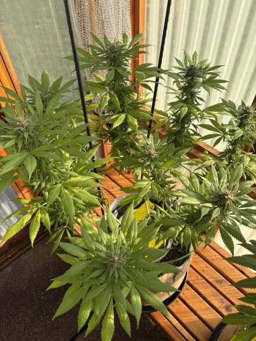 cultivars SEPTEMBER 13th to SEPTEMBER 20, 2025 Sunrise: 07:39 | Sunset: 20:01 | Total Daylight: 12:22 Weather was much better this week, with plenty of sun and warmer temperatures. Plants responded very well. Purple Romulan specimen is doing well, blooming as expected, and the flowers have put on some size this week. Trichome production has improved, but not to the degree I was hoping for. Still lots of time. Still a mild fungus gnat presence, but BTI treated rainwater and yellow sticky traps have helped to keep populations at bay. Plant received an organic liquid amendment, and responded well to it. Allowed plant to dry back to almost droop this week, which also seemed to have addressed the suspected over-watering situation and the excessive leaf turgor. Did some mild and strategic leaf defoliation to help open the plants and improve light exposure to the middle. Plant smells of pine, but it isn't particularly strong on its own, mostly noticeable upon manipulation of the plants (I rotate it 1/4 turn daily). DAY 127 n/a DAY 128 1L top water with Liquid Amended Soil Drench (Bloom Formula); Drip watered 600mL of plain rainwater; Some good sun later in the day. DAY 129 Mild defoliation of all specimens; Good sunny day, plants doing well. DAY 130 Nice sunny day; Overnight light rain. DAY 131 Mostly sunny day, good temps, decent humidity levels; DAY 132 n/a DAY 133 Compost Tea prepared this morning, to be brewed for 24 hrs, instead of normal 36 hrs; Mid-Afternoon, plants showed some droop, indicating sufficient dry back; Applied 1L plain rainwater via drip system.