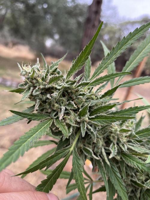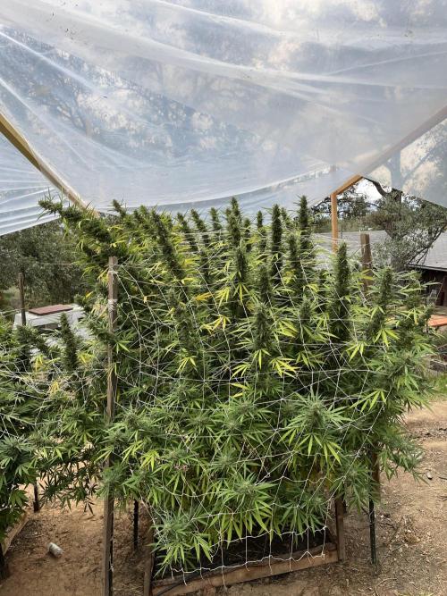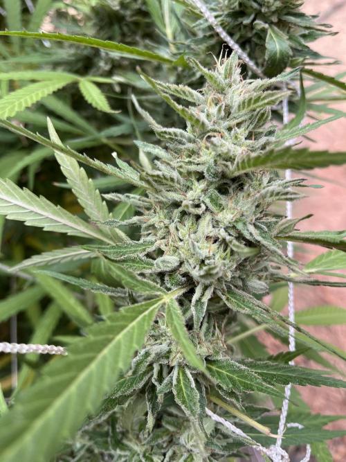 What can I say the Apple fritter continues to do very well have no insect damage and no major issues to mention. The plant has been completely trellis for the last time. The bud structure is really great. The branches are really large. Really happy plant is doing well. top dressed it’s last top dress with one cup each of flower, finisher, primo Hydroslate, pure kelp, dry, and soluble seaweed extract as well as Azomite. All of these are micronized and soluble powdered so the plant should uptake the nutrients much faster than traditional top dresses. Don’t have any large granules that are gonna take time to break down and water in from here on out it will be water with its last two sugar water drenches, which I will use boogie brix, and black strap molasses brixs. with all of these nutrients and amendments in place I will let the girls ride out their last few weeks with Just nice rich mountain water to ensure they use every bit of the sugar, phosphate and potassium for frosty buds with heavy resin and terp production .