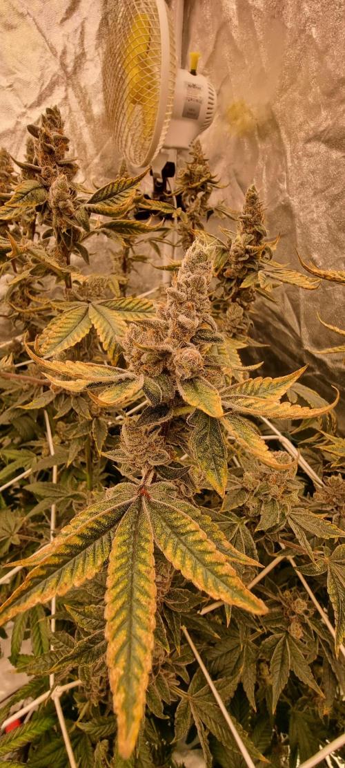 It's becoming pretty difficult to shoot photos in there.. i barely have space to add water to the buckets ( now 8 liters every day), added net for support and "constriction" of pinus because she's huge and was starting to trow shadow on the fresh pressed runtz.