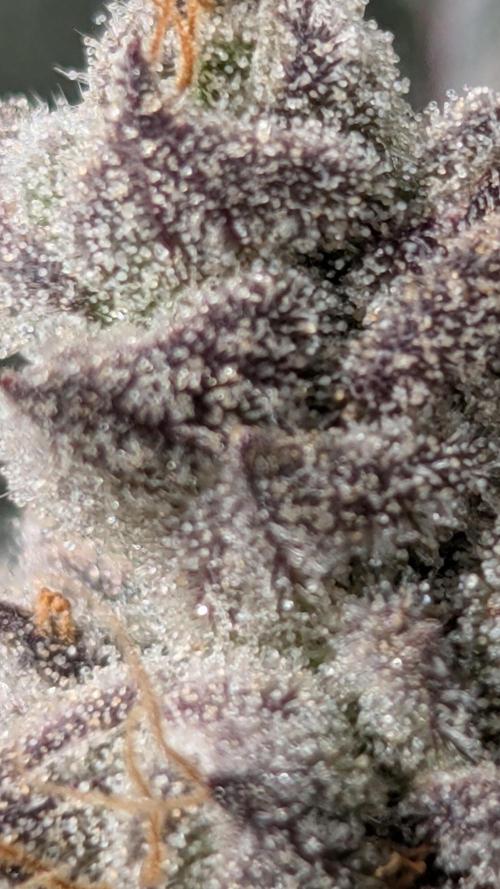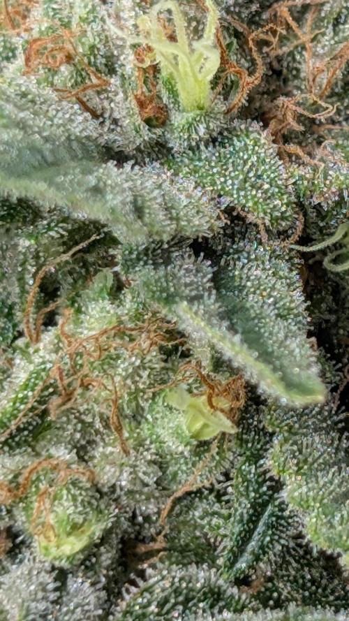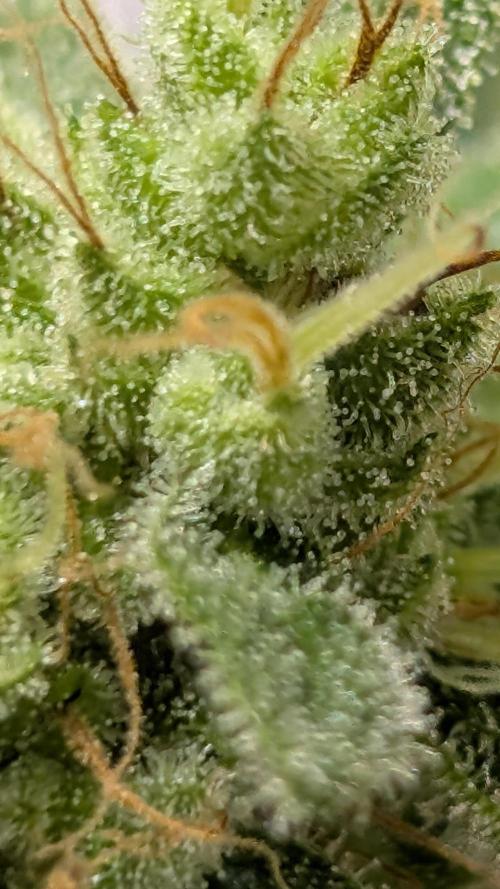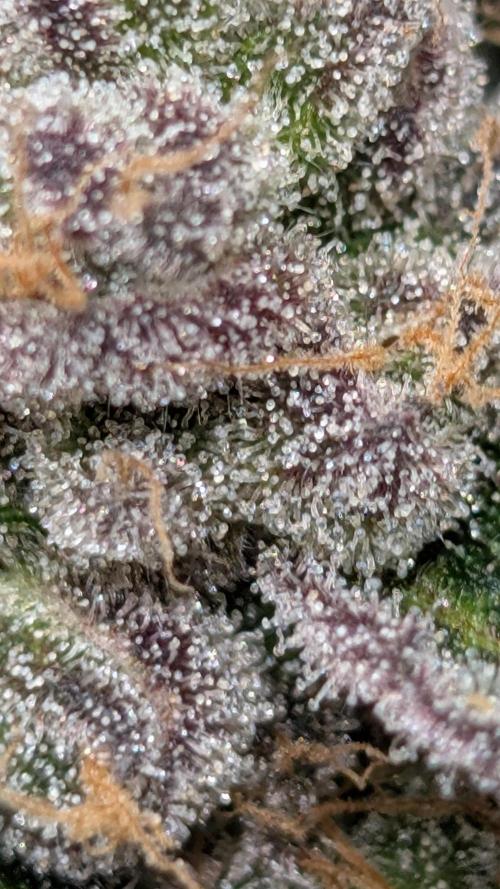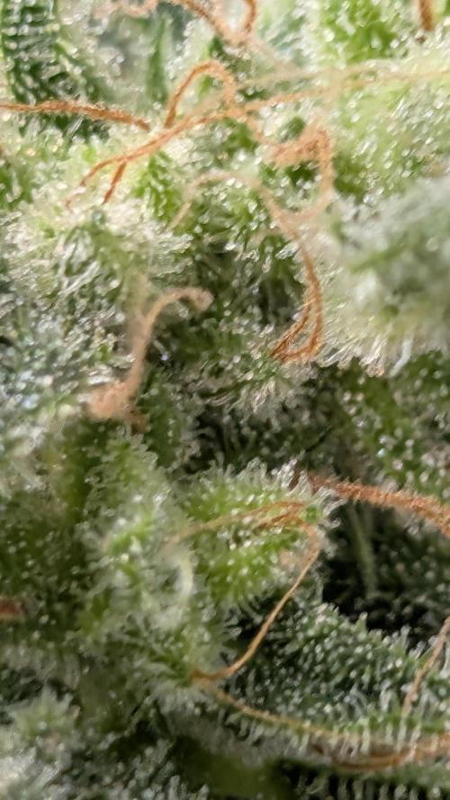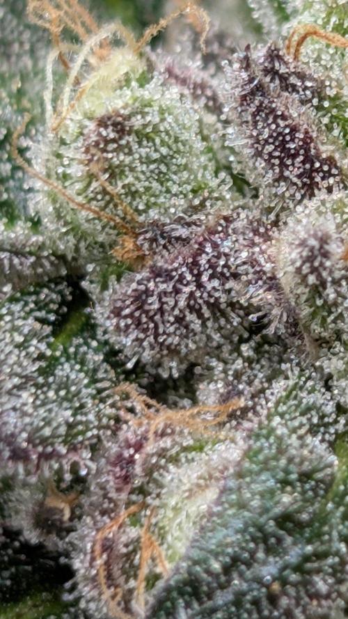 Die Trichome sind fast alle milchig. Vereinzelt sind auch Bernstein zu finden.