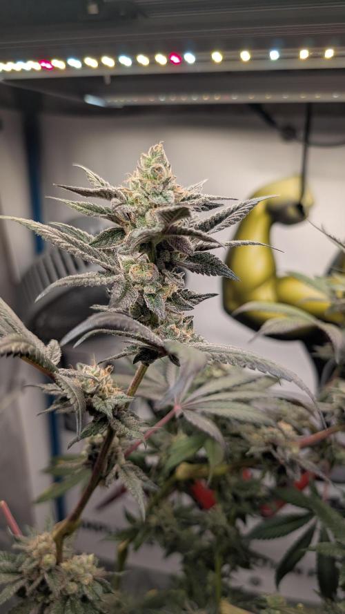 Die Temperaturen machen ihr etwas zu schaffen, sodass manche Buds Recht luftig werden, so macht es zumindest gerade den Anschein. Evtl auch leichte Ansätze von foxtailing. Aber das wird sich in nächster Zeit wohl herausstellen wo die Reise hingeht.