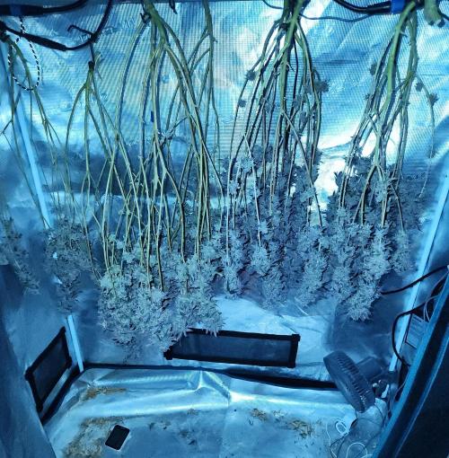 Ended up with a mix of amber/cloudy & clears with the Super Lemon Haze x Gary Payton, would say 30% amber, 20% clear & 50% cloudy/mostly cloudy trichs! Have it drying in the 2x4 at 20C 60% RH & will be moving what's left in the 4x4 into the 2x4 once the space is free'd up if they will fit!