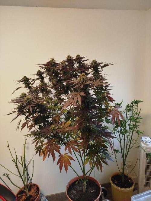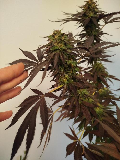 AK hat als letztes angefangen, zu blühen. Daher sind die buds relativ klein. Daher bisher keine Schimmelstellen. Sie haben alle beiden ein dunkelviolettes Herbstkleid und sehen bezaubernd aus. Die Harzproduktion ist trotz kühler Temperaturen in die Gänge gekommen und sie riechen langsam etwas. Hoffe, kommende Woche gibt's noch ein paar trockenere Tage.. es geht langsam dem Ende entgegen 😭 noch läuft es. Bis nächste Woche ✌️