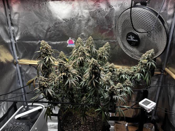 ILikeCheezzz week 9 of flower… sour lemon stank hits your face when you open the tent. Not the most interesting smell but cant wait to see her effects. expecring to cut st week 11.