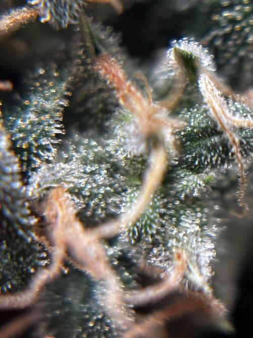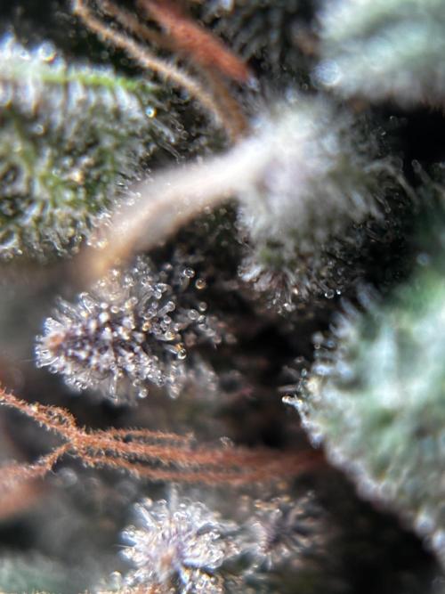 ILikeCheezzz Good week here in the tent. Suddenly trichome production seems to have started. Still that citrus-sour smell mostly. Can’t pinpoint any other smells yet but I’m liking it. Still hoping for some fuel/dank notes to come through though.