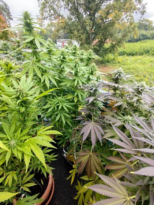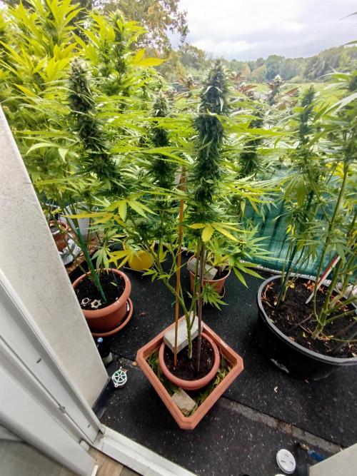 GermanGrow182 Der Herbst ist da. Sonne , Wind Wind Wind und Regen wechseln sich ab.larry ist n Blüte Woche 5, die AK in woche3 . Die buds werden dicker und dicker 😁. Noch keine Anzeichen von Schimmel. Die Nacht Temperatur ist noch nicht unter 8 Grad gewesen, kaum fade zu erkennen.