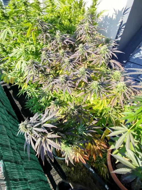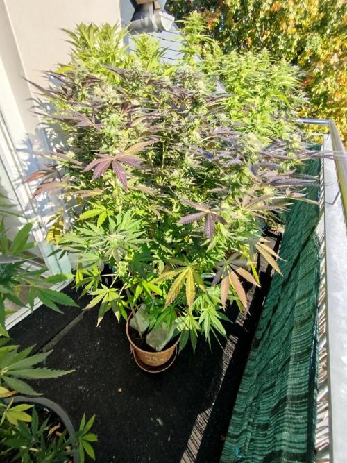 Die AK sind gut in der vollblüte angekommen und nutzen jeden Sonnenstrahl, um Masse in den Blüten anzusetzen. Die AK zeigt purple. Sattviolett aufgrund der letzten 3 Nächte unter 5 Grad.